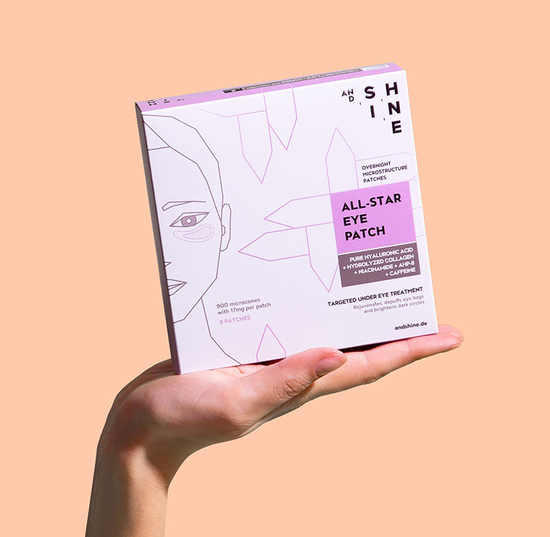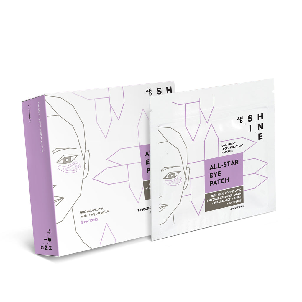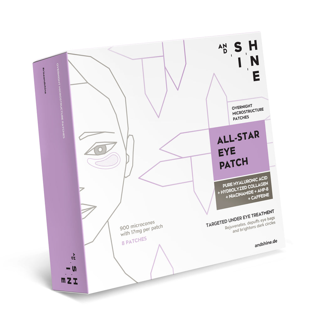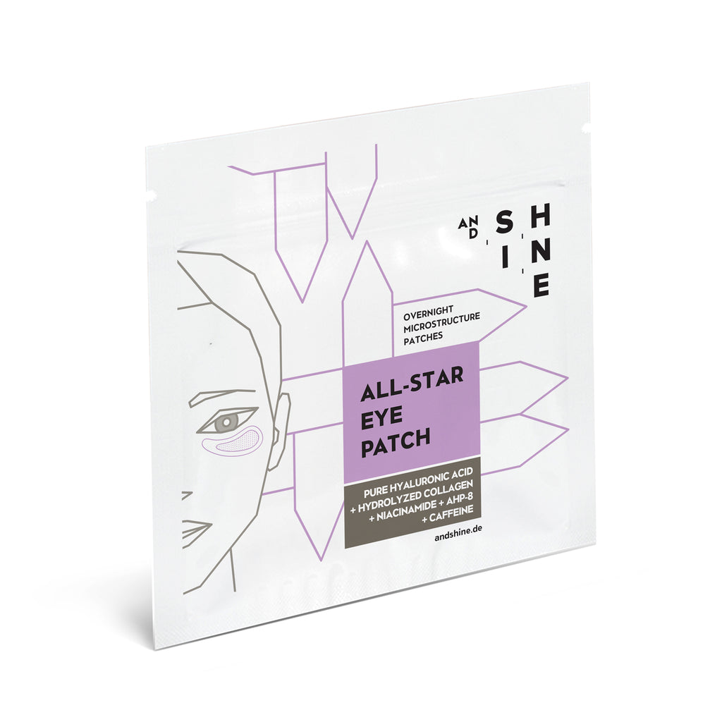 The patented composition of pure and cross-linked hyaluronic acid, hydrolyzed collagen, niacinamide (vitamin B3), caffeine and the anti-wrinkle peptide AHP-8 on a microstructure technology can provably reduce wrinkles and bags under the eyes, lighten dark shadows and improve the texture of the eye area.